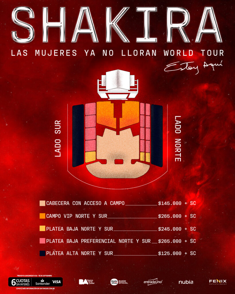 La locura en la venta de entradas confirma una vez más el estrecho vínculo que Shakira tiene con nuestro país, siendo el elegido para cerrar la etapa latinoamericana de su gira “Las Mujeres Ya No Lloran World Tour” que en este regreso llevará por subtítulo “Estoy Aquí”, en honor a la canción que marcó el comienzo de su proyección internacional.