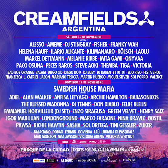 Creamfields Argentina se realizará los próximos 16 y 17 de noviembre en el Parque de la Ciudad, un escenario ideal para disfrutar de dos días de música, tecnología y diversión. Sin duda, las generaciones actuales y futuras seguirán disfrutando del concepto Creamfields, un festival que ha sabido adaptarse y crecer con el tiempo, manteniendo siempre su espíritu innovador y su pasión por la música electrónica. Creamfields Argentina, es producido por Fenix Entertainment.