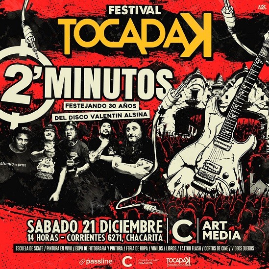 El Festival Tocadak celebra una edición muy especial, conmemorando las tres décadas de “Valentín Alsina”, el icónico disco de 2 Minutos. En esta ocasión, la banda revivirá el espíritu de su álbum debut, tocándolo en su totalidad.