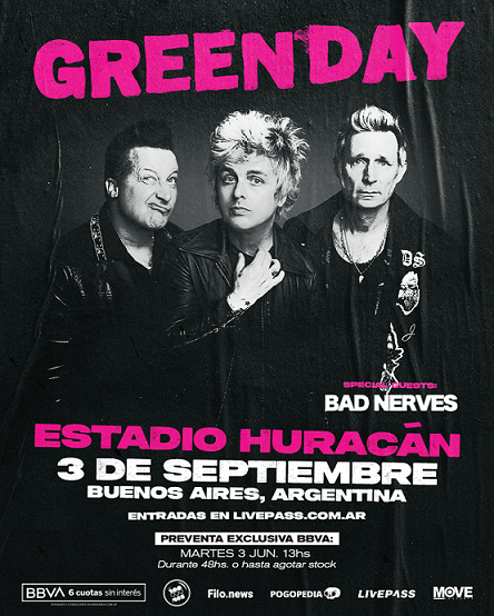 Tal cuál lo anticipó en sus redes sociales, Green Day finalmente confirmó su esperada visita a nuestro país para el miércoles 3 de septiembre.