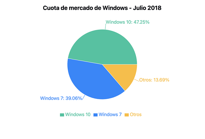 En ese entonces, el segundo sistema operativo más usado de Microsoft era Windows 7, con una cuota del 39,06%. Si lo analizamos desde otra perspectiva, el sistema más reciente en ese momento (Windows 10) ya había superado a todos los sistemas anteriores de Microsoft, algo que, por el momento, no se está repitiendo con Windows 11.