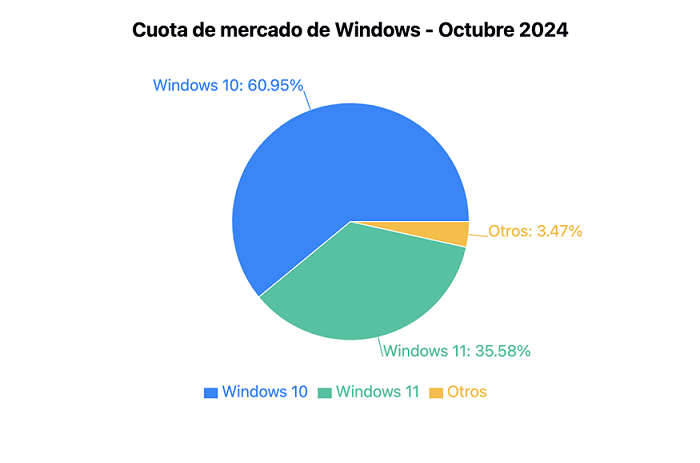 Tres años después de su lanzamiento, Windows 10 dominaba el mercado con un 47,25% de cuota. Windows 11, que llegó en octubre de 2021, cerró el mes pasado con una participación de mercado del 35,8%.