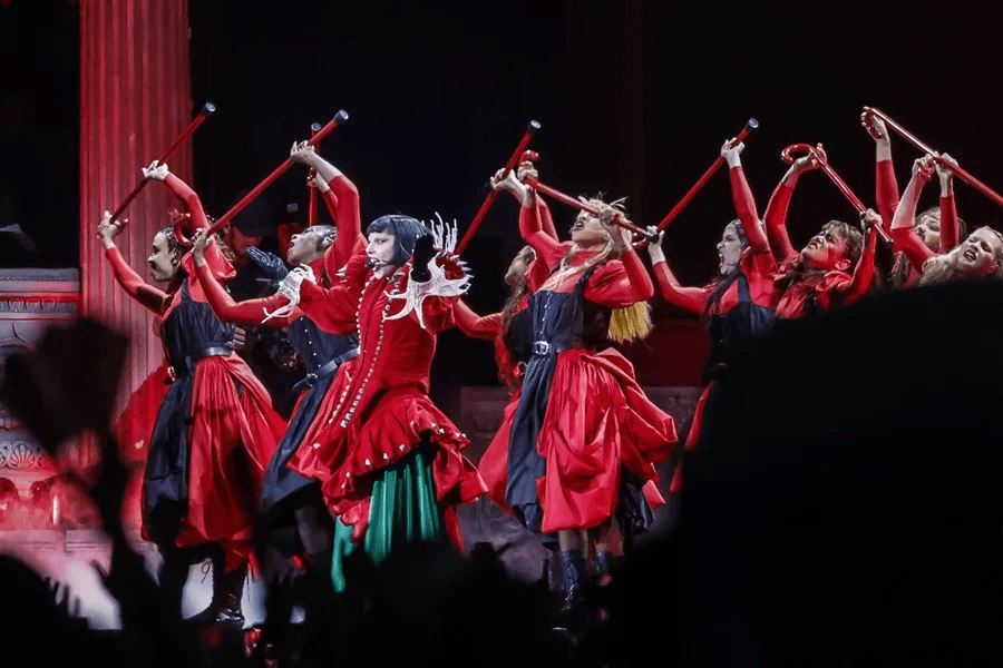 A lo largo del espectáculo, se combinaron referencias culturales locales con un repertorio que incluyó temas como Alejandro, Born This Way —considerado un himno de la comunidad LGBTIQ+— y Shadow of a Man, de su más reciente producción discográfica.