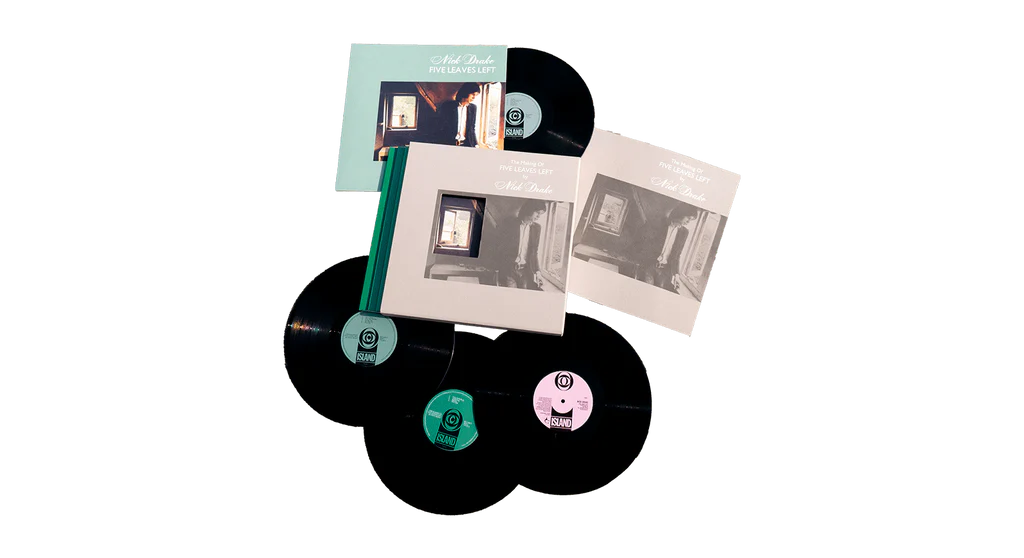 ‘The Making of Five Leaves Left’ contiene la primera sesión de Nick Drake en los legendarios estudios Sound Techniques, encontrada en una cinta en mono que Beverley Martyn guardó hace más de cincuenta años. El set completo ha sido masterizado por John Wood y Simon Heywood. También incluye un libro ilustrado de 60 páginas, escrito por Neil Storey en colaboración con Richard Morton-Jack.